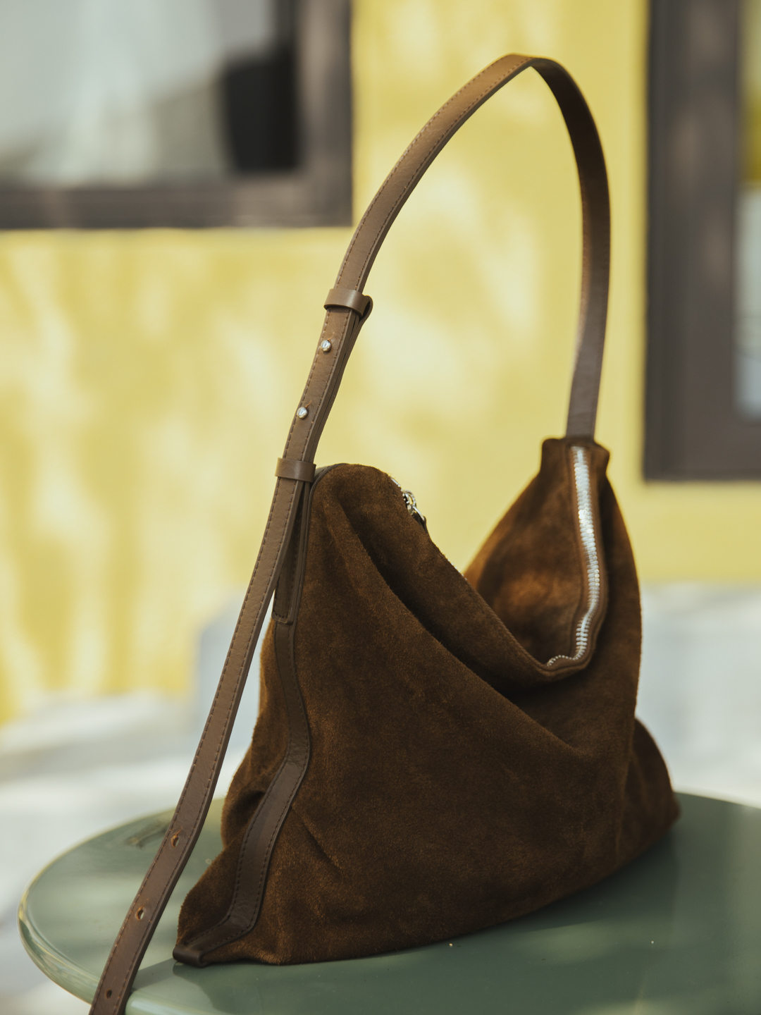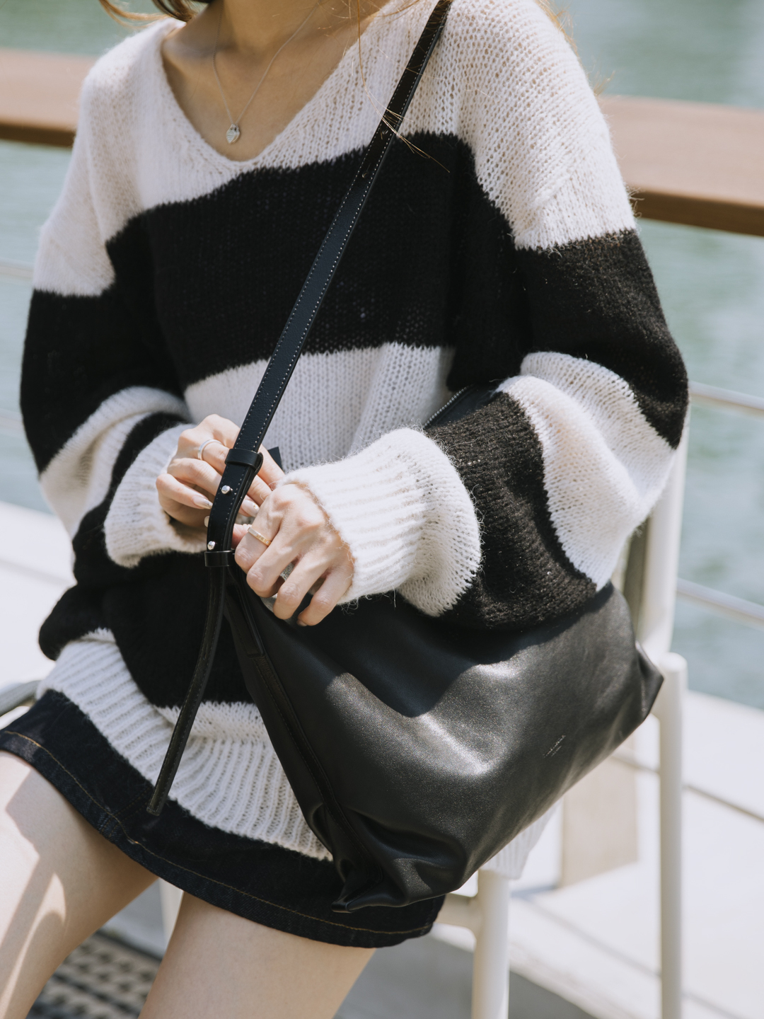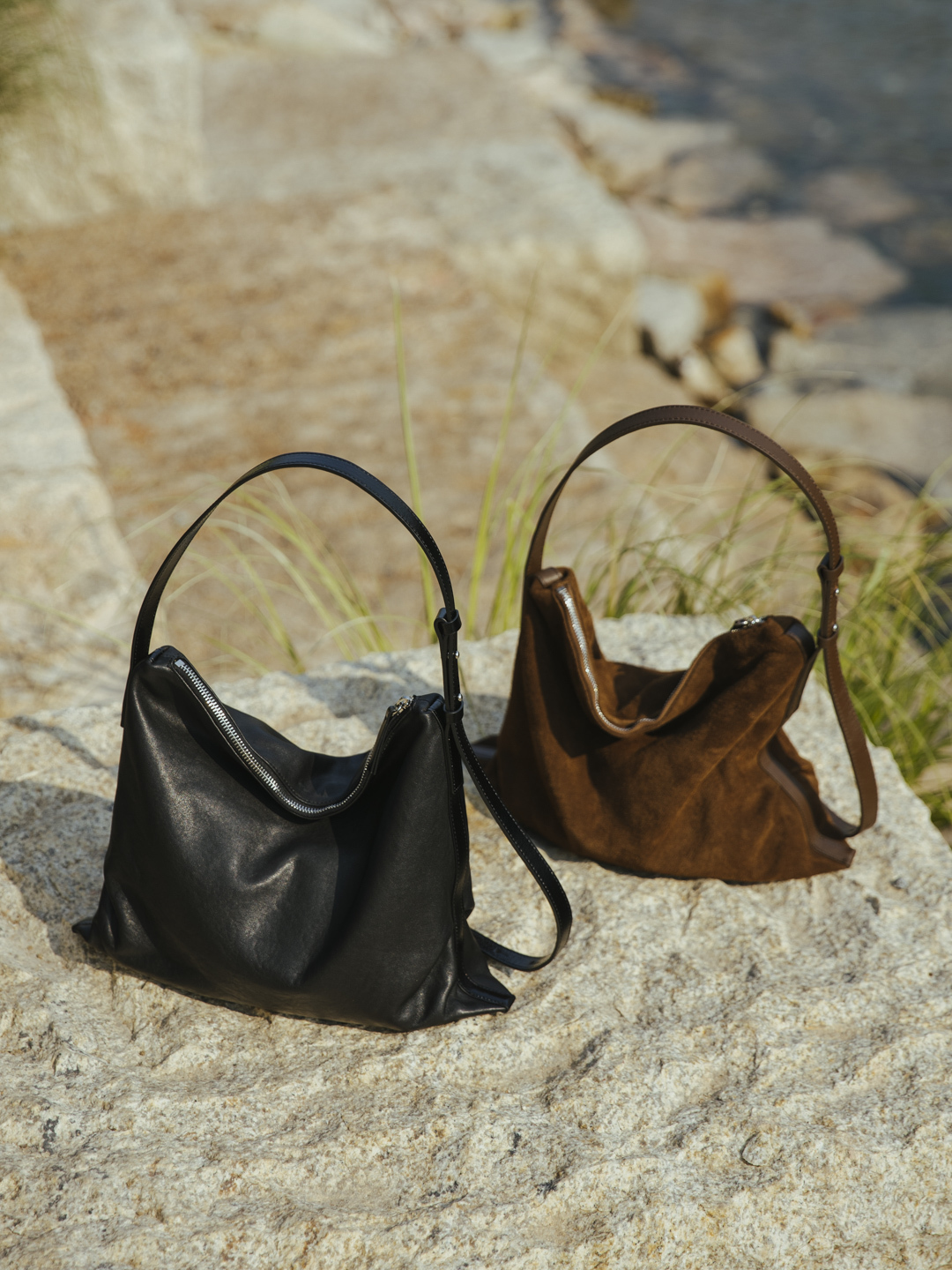 本店精選來自韓國設計皮具店的真皮手袋,為CP值極高的袋款。版型簡約時尚帶個性,左右角摺縫令袋型顯慵懶休閒。軟皮材質而容量十足,可容納瑣碎的必需品,同時附拉鍊內隔放置小物,外出方便,手提帶可調節成3段長度,腋下、手提、側攜、斜挎等能隨時轉換,配合不同造型需要,一袋多用!👜