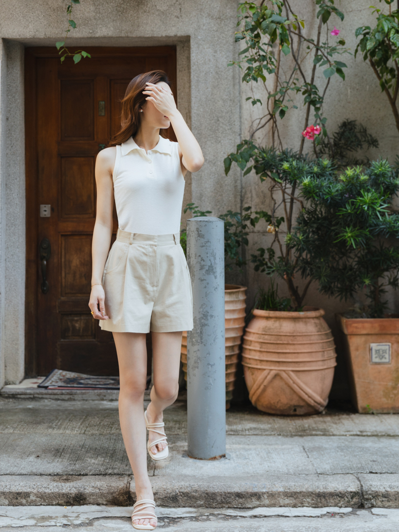 俐落A字剪裁有效修飾臀腿線條,將贅肉與股骨的外形重塑,而中高腰連寬褲圍設計,視覺上更拉長腿部比例。選用挺版斜布面料,在前片加入細打褶設計,讓穿著更自在、不緊繃。而後口袋上置的設計使臀型自然上提。知性簡約,日常或通勤皆適配。