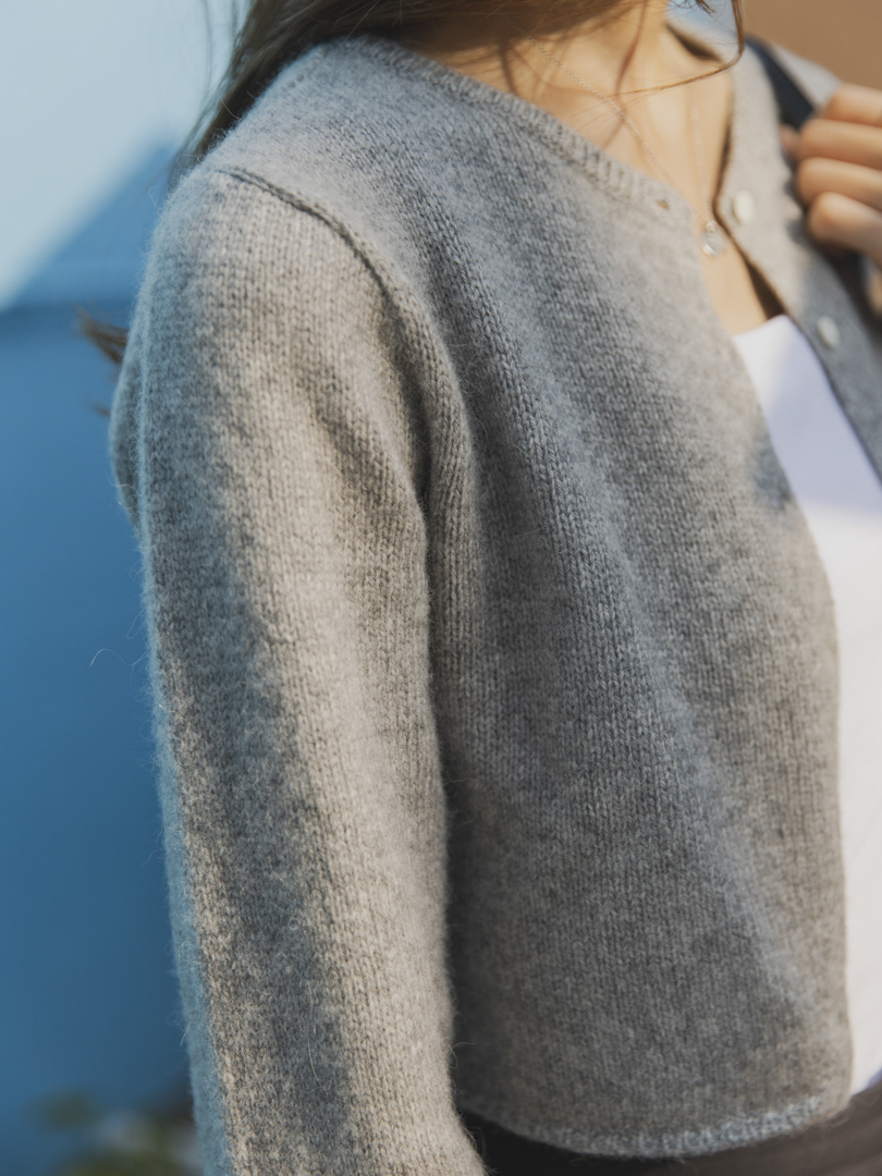 選用高級羊毛混紡,具天然毛料的柔韌與透氣特性,手感細緻卻不厚重,特別適合換季時或於冷氣室內穿用。短版設計拉高腰線,瞬間延伸下身比例,無論搭配裙或褲都超修身,是多層次搭配的首選,也是嬌小型女生與高挑身形都能駕馭的百搭基本款。