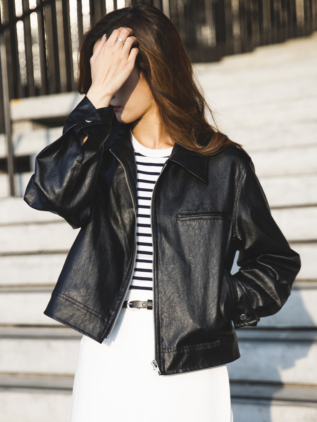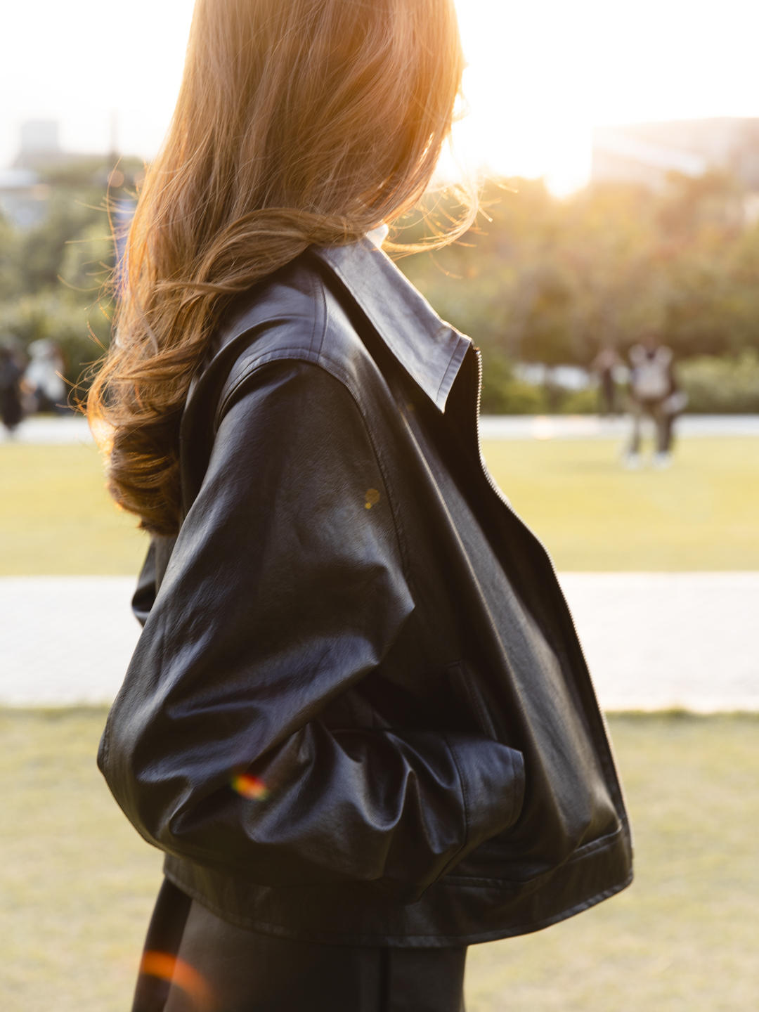 秋冬絕對是皮具的季節。比起傳統貼身修腰剪裁,微短版Boxy Cut外套更富時代感,配以中性帥氣的翻領,細緻仿皮質壓紋,質感十足。而特選薄身物料,讓皮衣更輕,上身更瀟灑,冬季搭在多層保暖衣外亦無負擔。配襯裙裝或褲裝同樣完美,屬個性造型的必備單品!!♟️