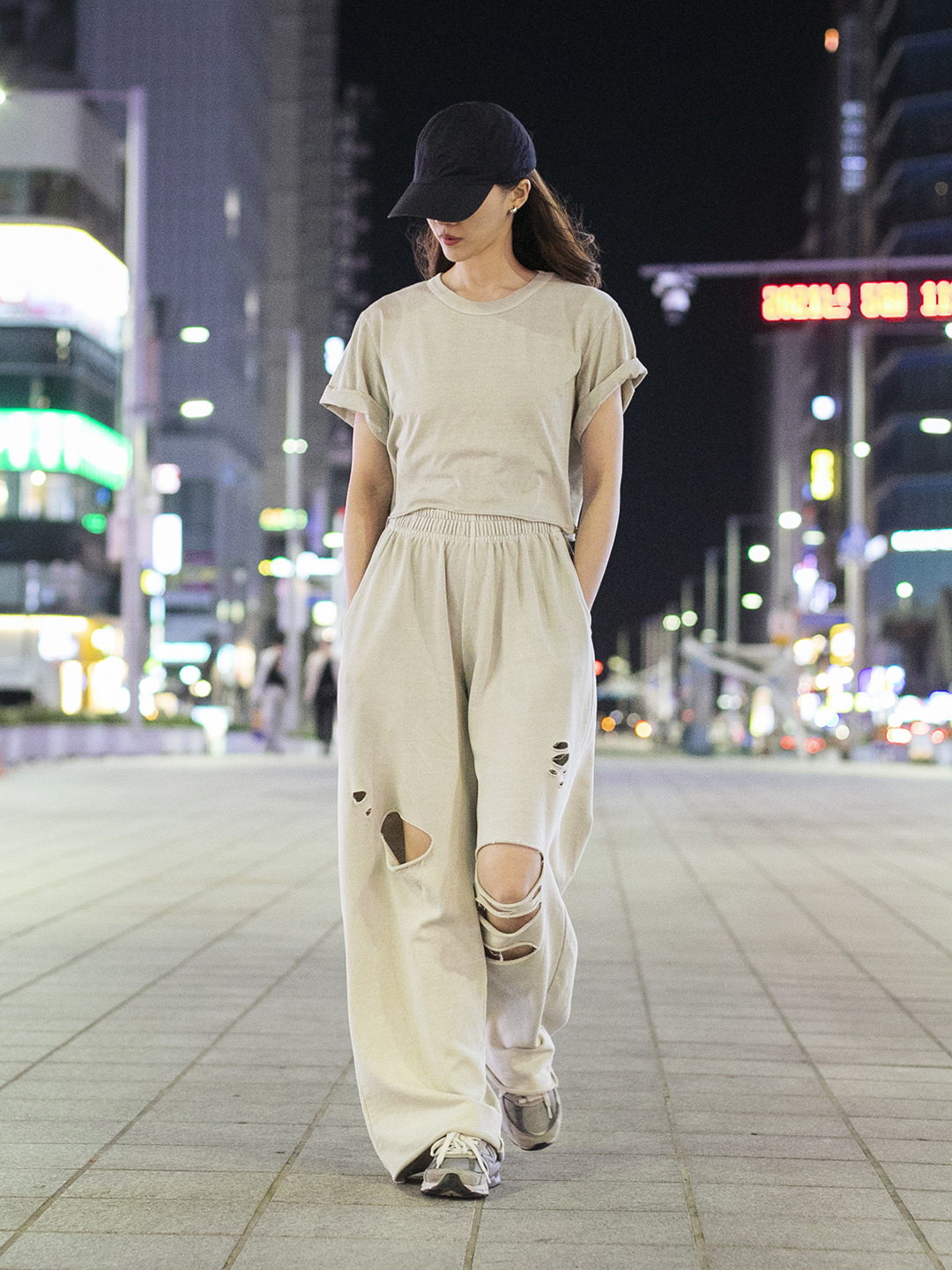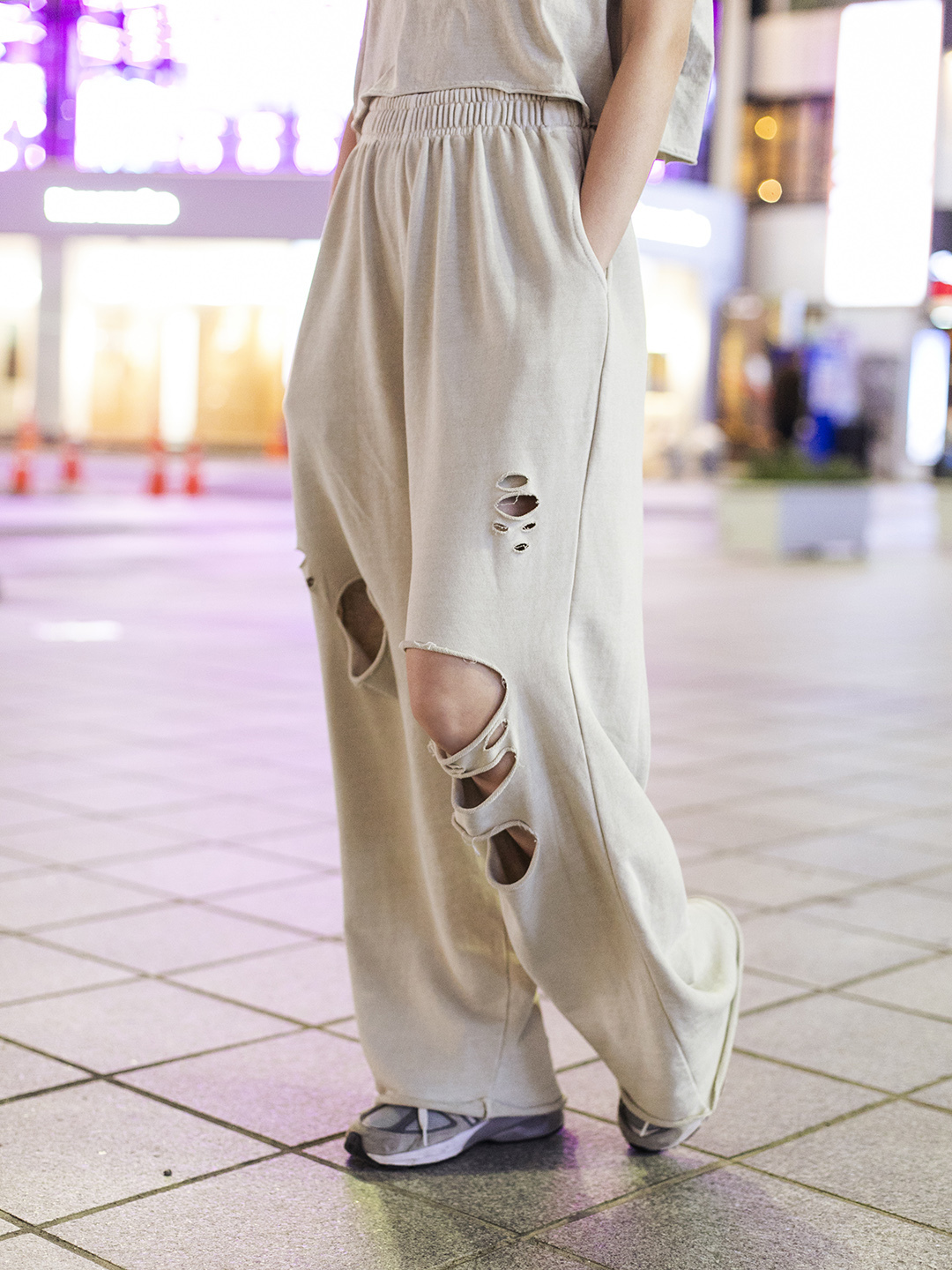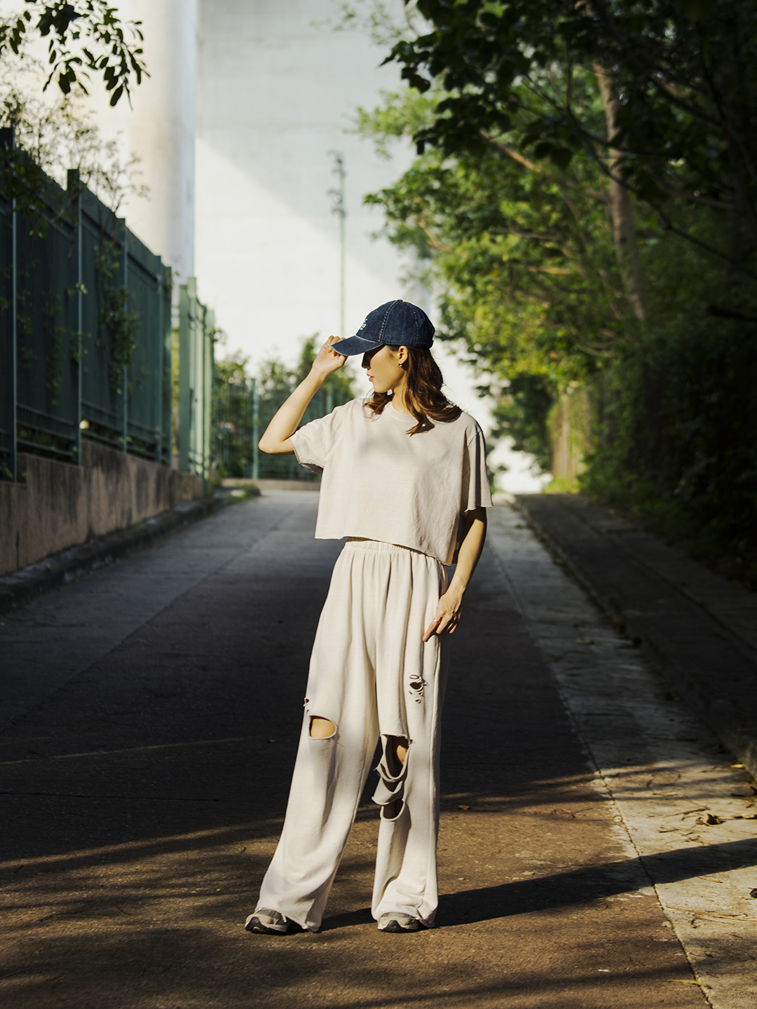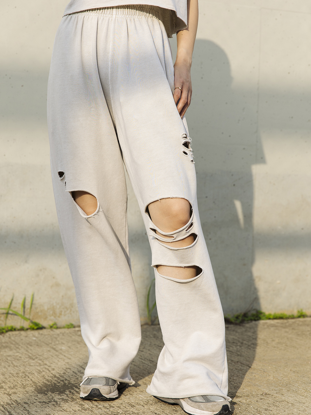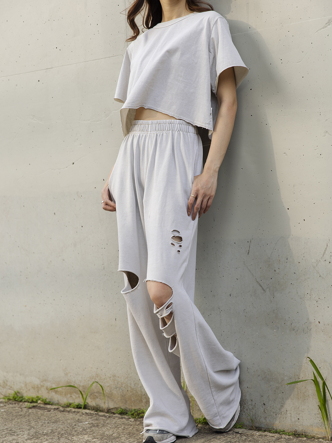 🎾米灰色套裝 - 破洞垂墜感長褲🧢