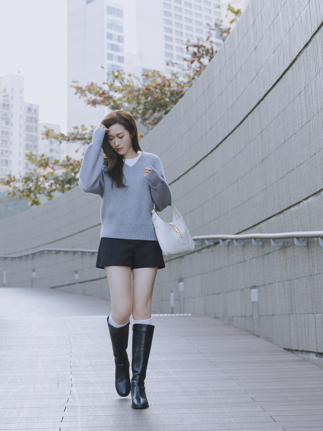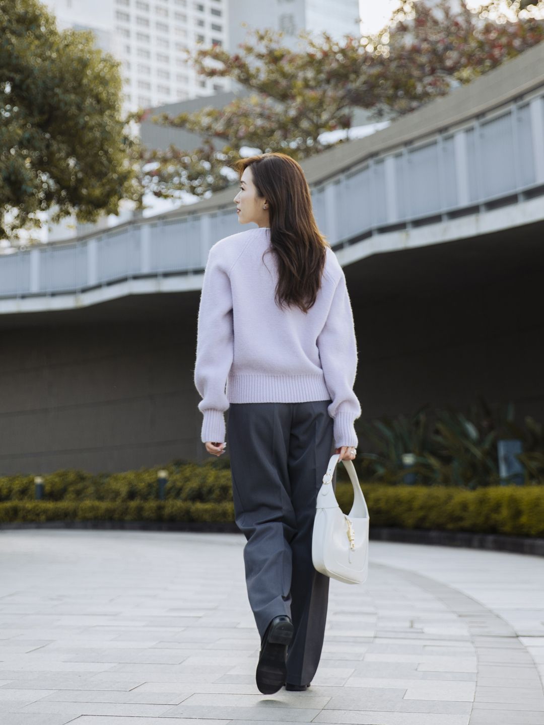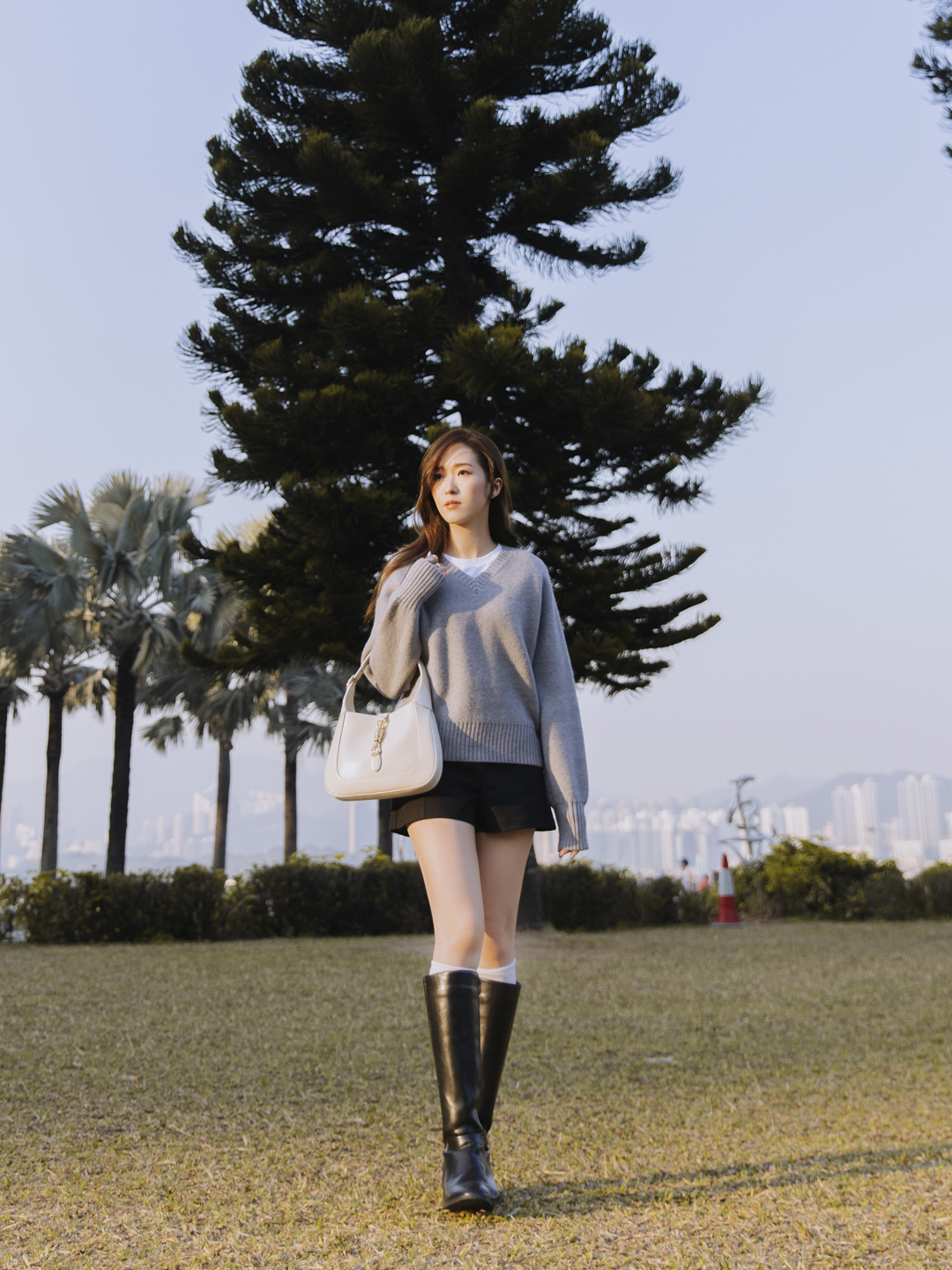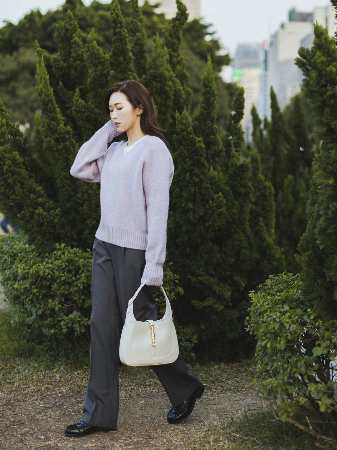 相對有厚度的質感毛衣,順滑表面親膚而易打理,無肩線及闊羅紋邊緣設計更時尚,Wool-blend成份帶保暖作用,溫和選色百搭必備。