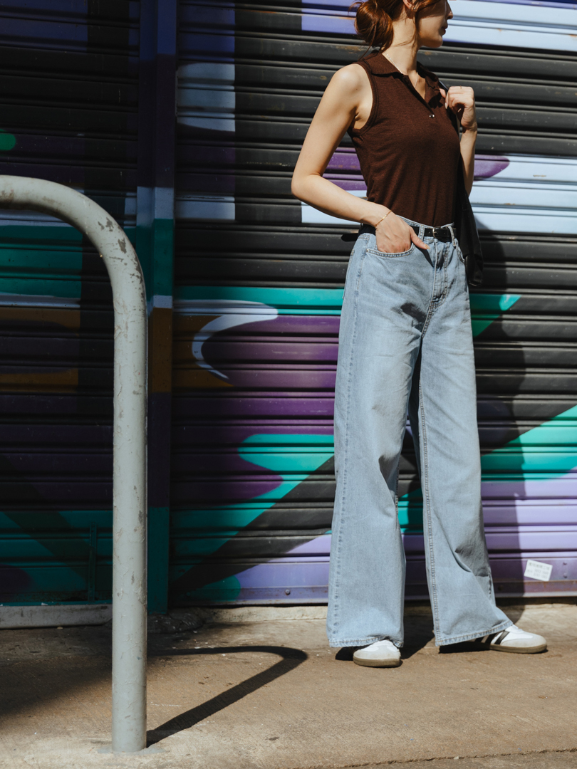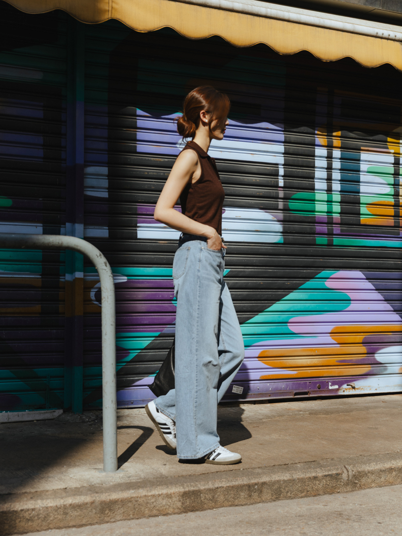 特別選用超輕量牛仔布料製成,垂墜感優秀,顛覆傳統厚重侷促牛仔褲的印象,薄質更適合夏天穿着,大大減低出汗程度。寬闊微喇落地版型,完美讓腿形變得更直更長,亦可隱藏鞋面讓腿部線條延伸至地面,達致極致顯高效果,打造韓系比例,是讓你視覺瞬間「高5cm」的秘密武器。