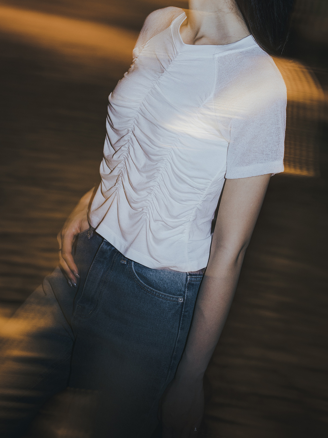 ⚪️皺摺感拼接薄線面短袖上衣⚫️ (兩色入)