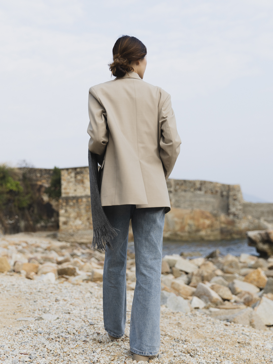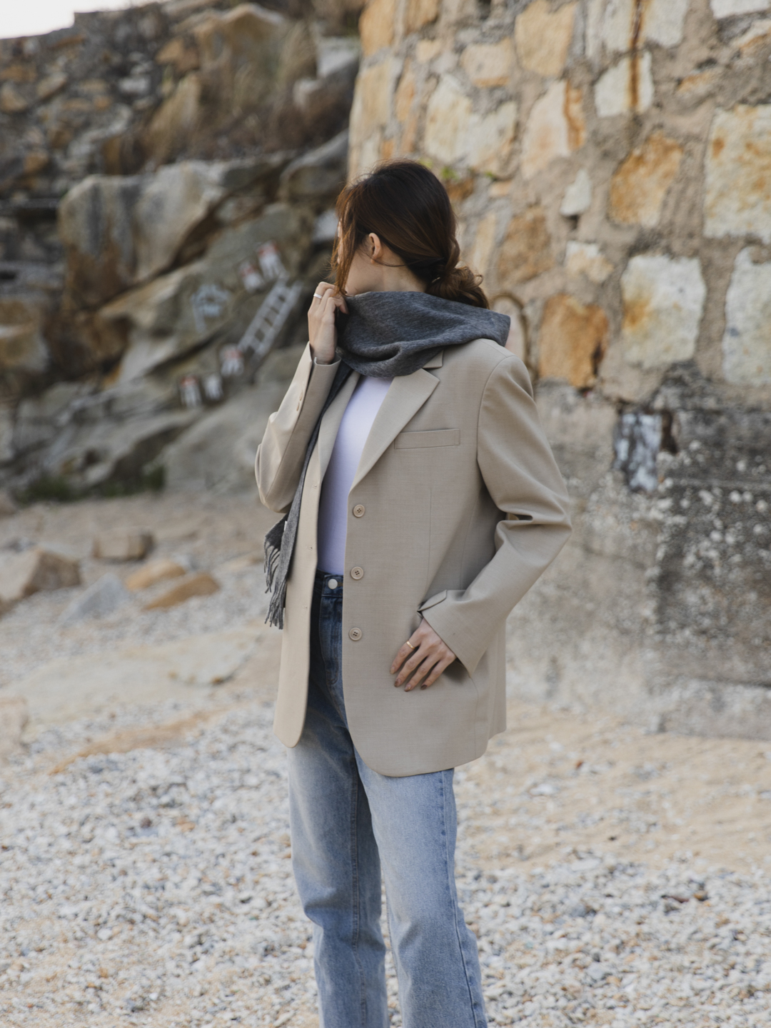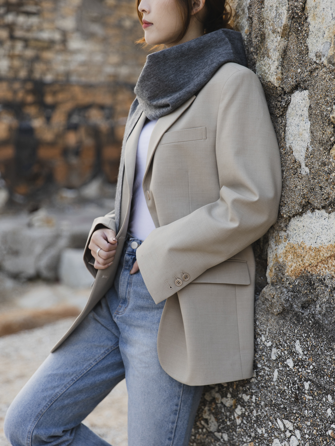 剪裁俐落、用料厚實的西裝外套絕對不可少,細膩而恰到好處的褶骨為身形不同部分的線條作立體修飾,並非一般無力而直筒的外搭可媲美。而內裡布同樣車線精細,附內口袋。雅致又時尚的拿鐵色西裝,穿上如同韓劇女主造型一樣自帶風範。