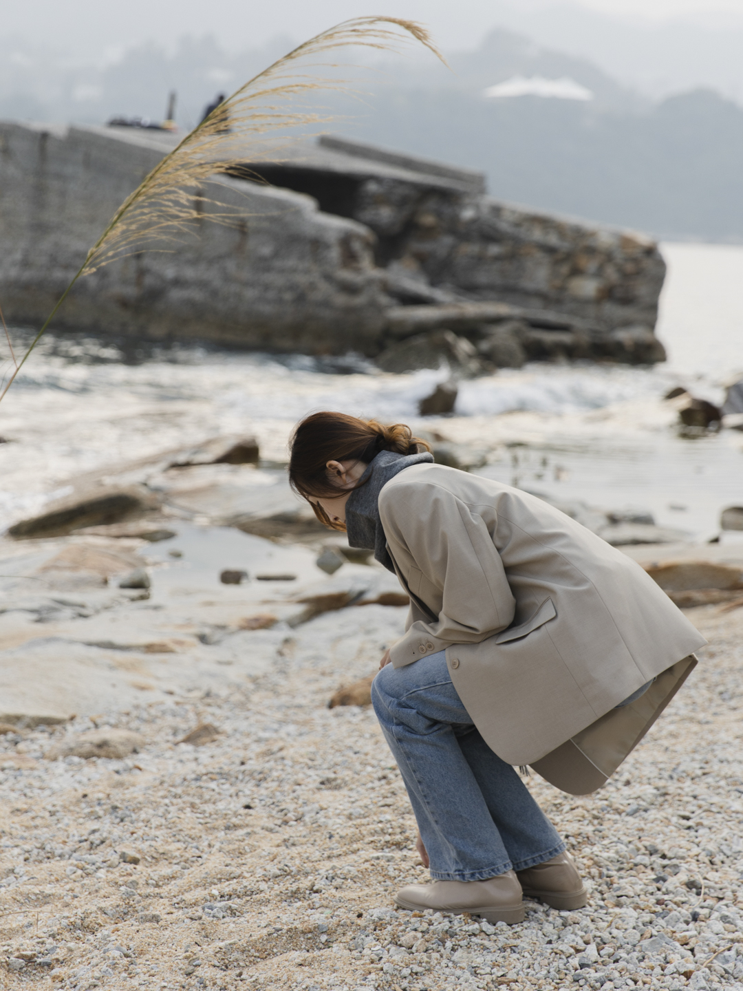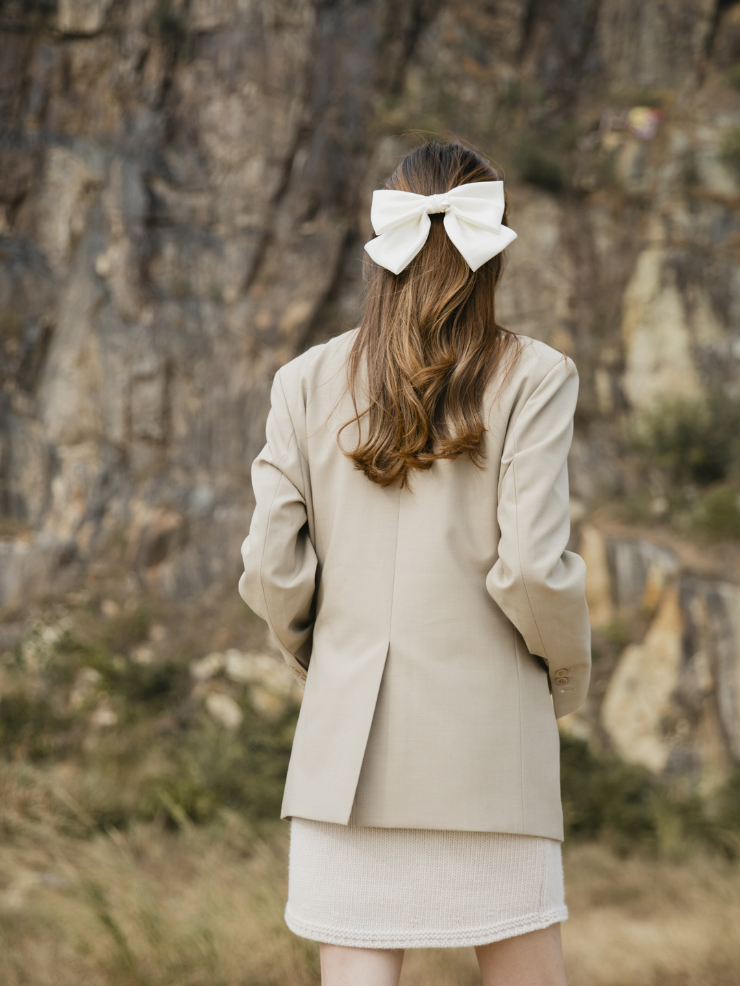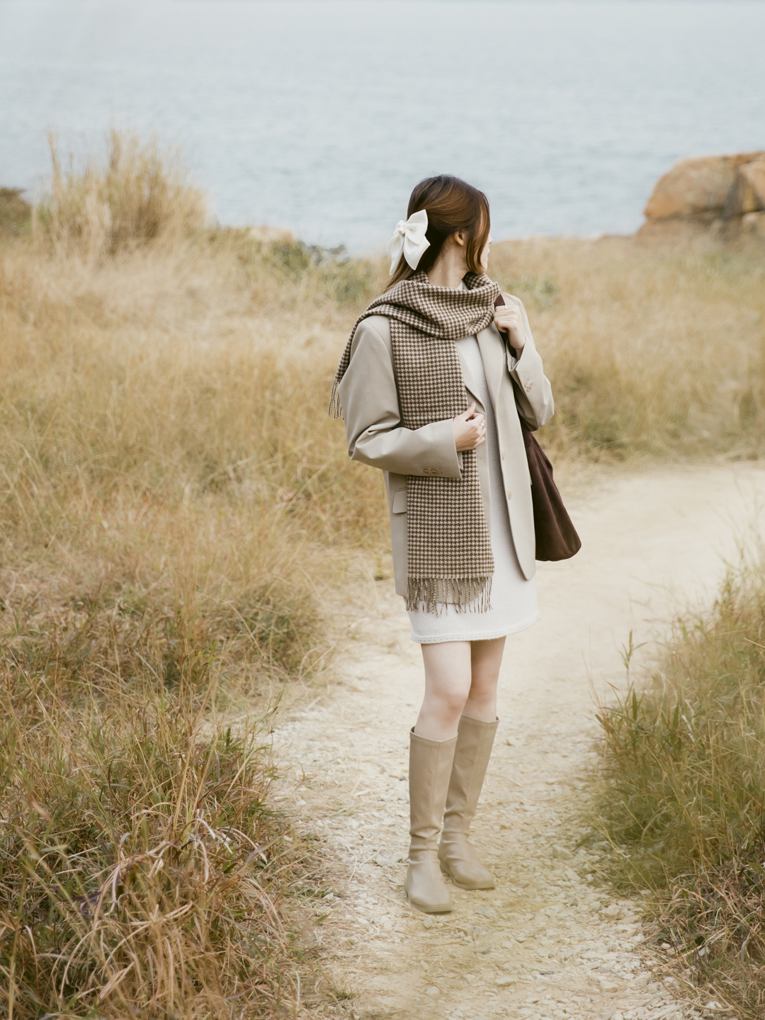 剪裁俐落、用料厚實的西裝外套絕對不可少,細膩而恰到好處的褶骨為身形不同部分的線條作立體修飾,並非一般無力而直筒的外搭可媲美。而內裡布同樣車線精細,附內口袋。雅致又時尚的拿鐵色西裝,穿上如同韓劇女主造型一樣自帶風範。