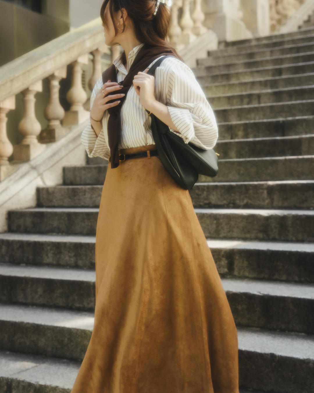 襯上經典麂皮長裙,造型更精緻大氣;配搭寬鬆西褲,老錢風永不過時;穿着直腳牛仔褲,亦知性時尚。