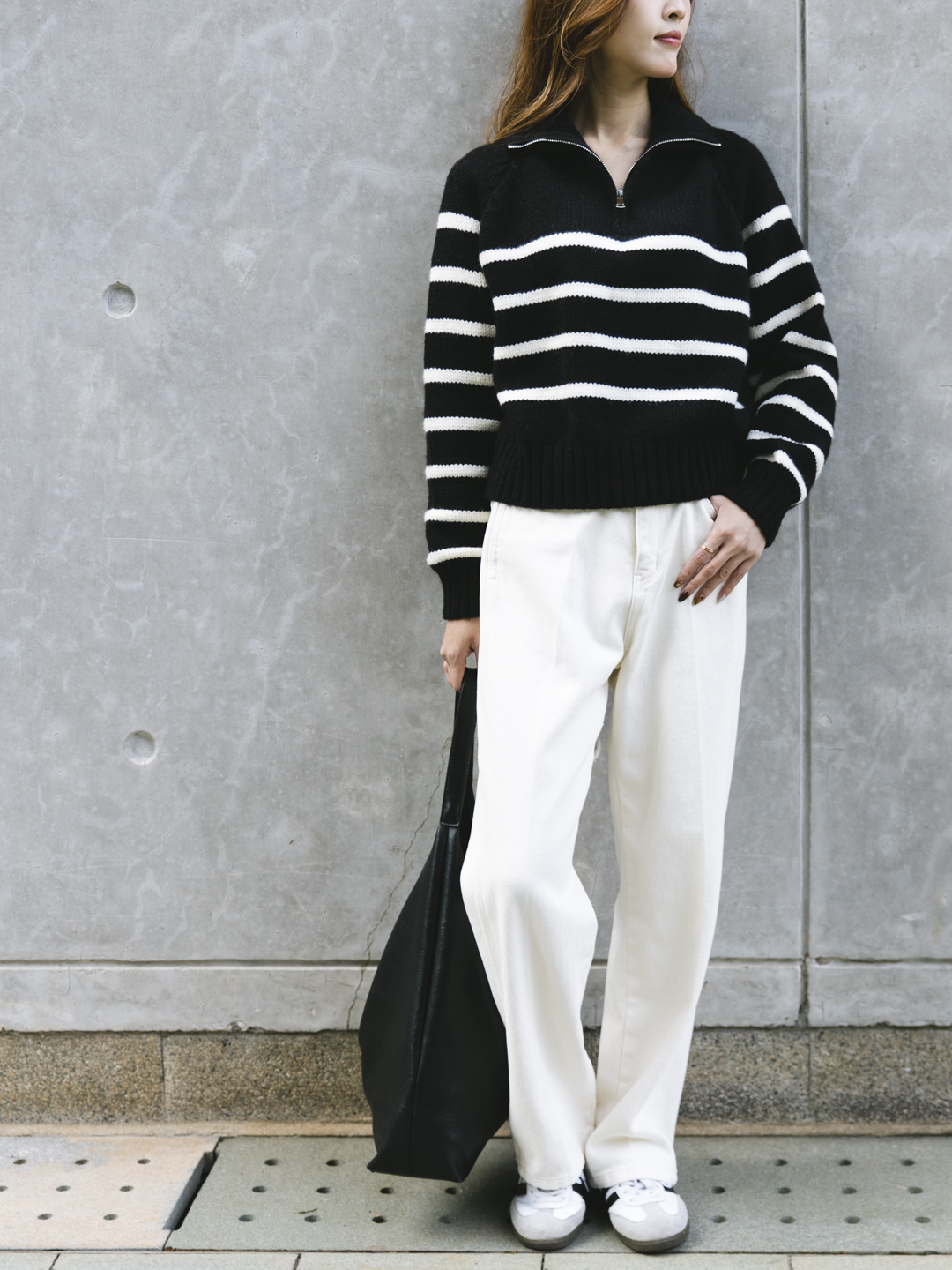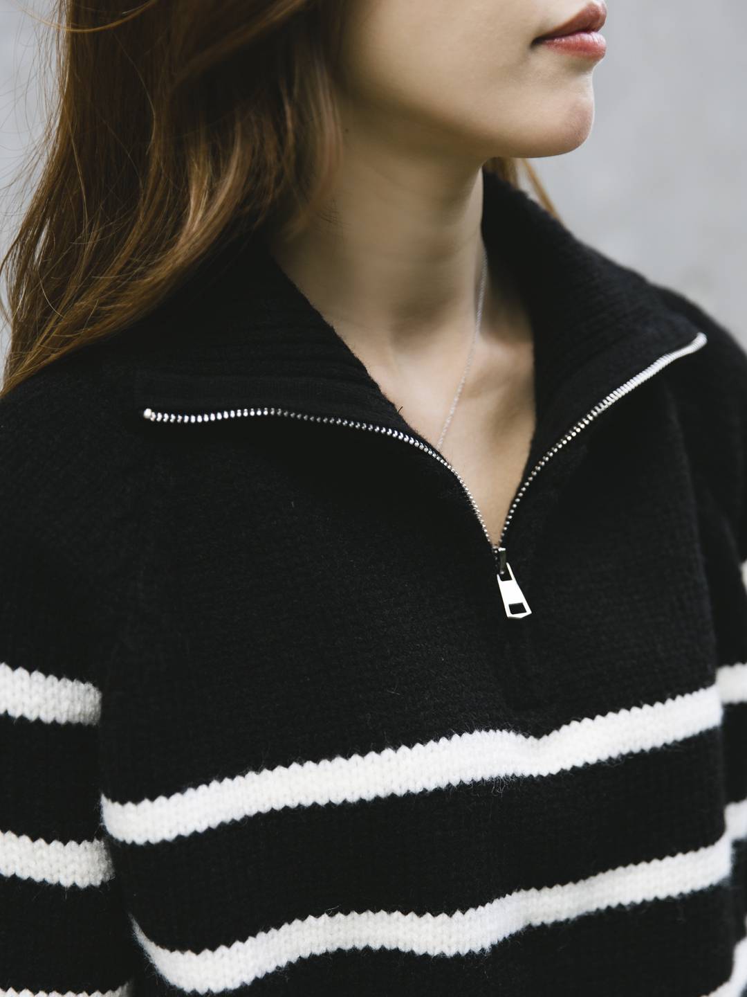 翻領半拉鍊間條毛衣