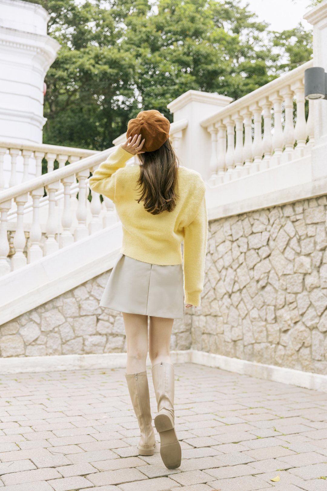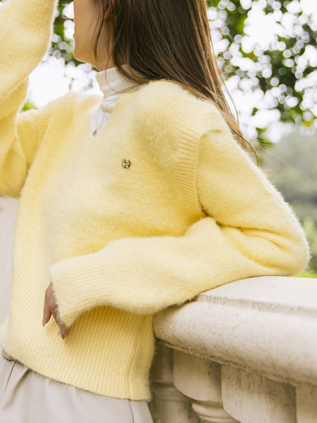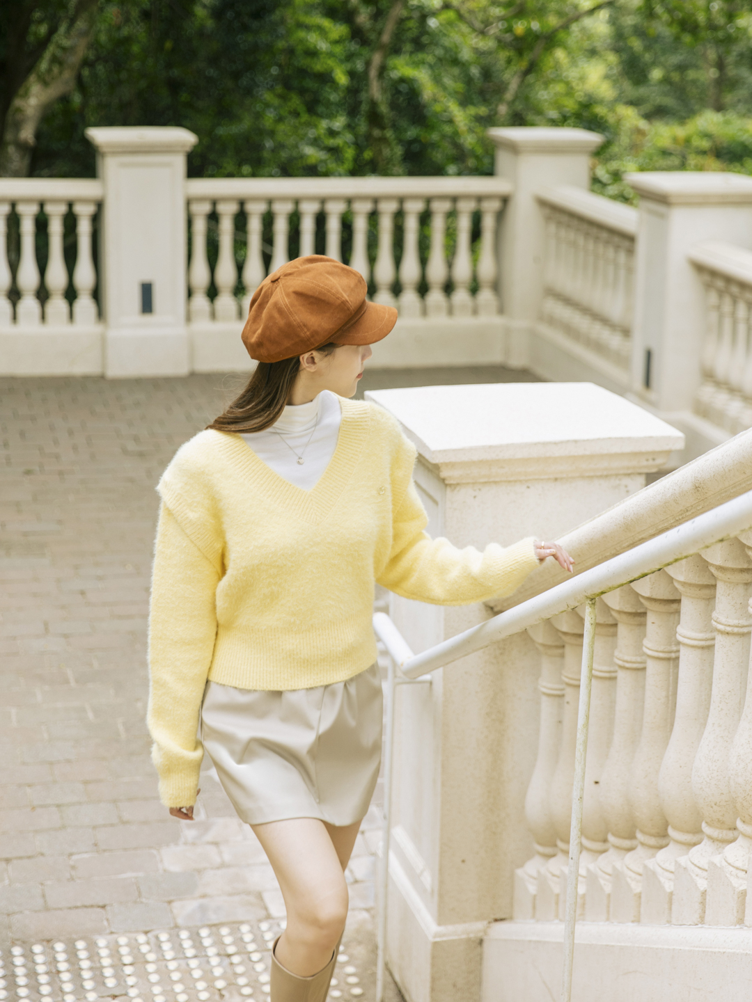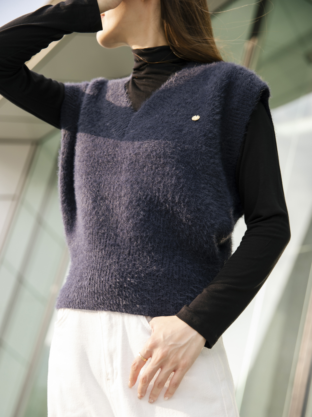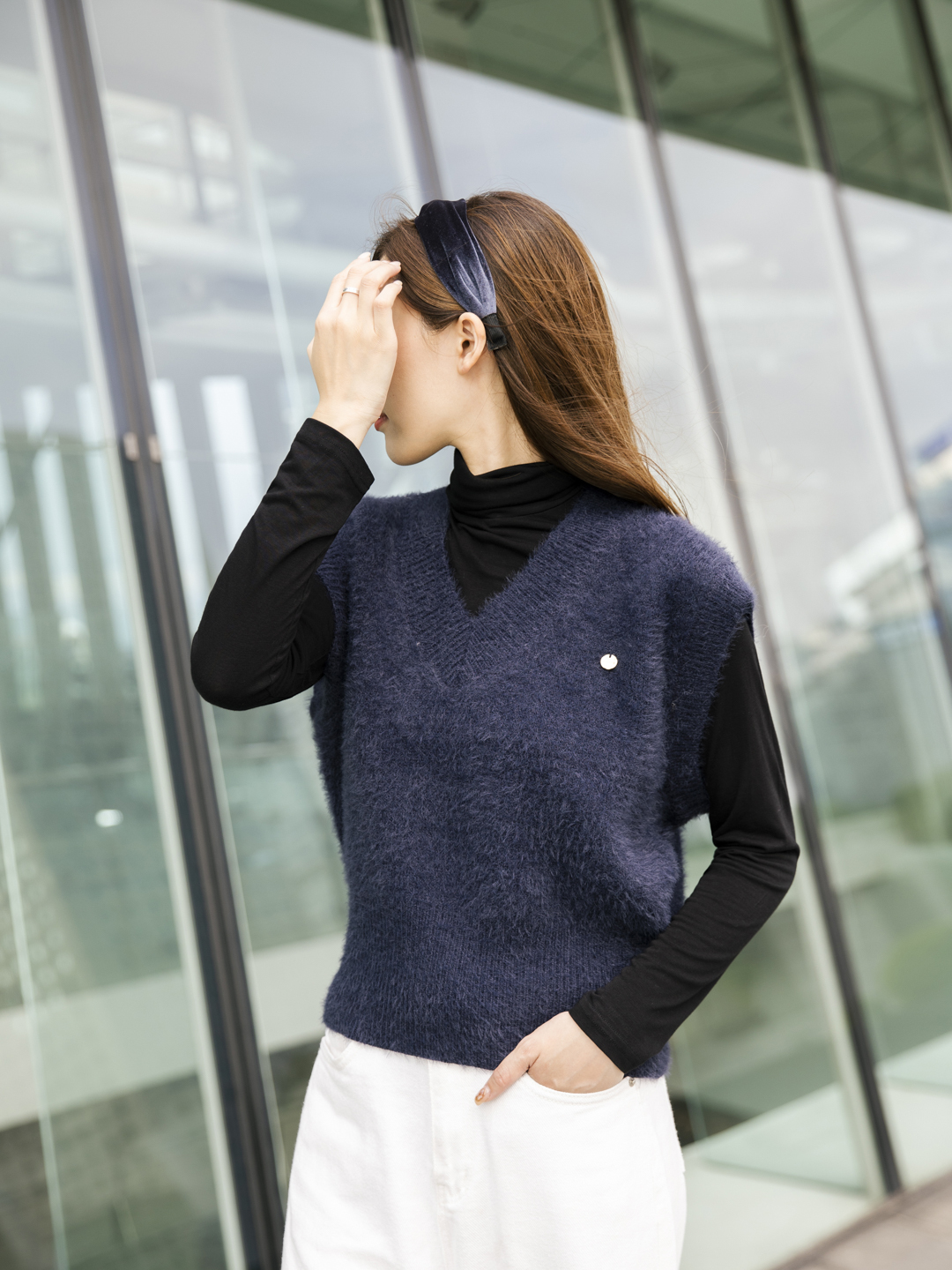 以大V領配落肩剪裁時尚顯瘦,帶點夢幻的毛茸茸質感更令人愛不釋手,簡單配以樽領衫或者恤衫內襯均可。🍋