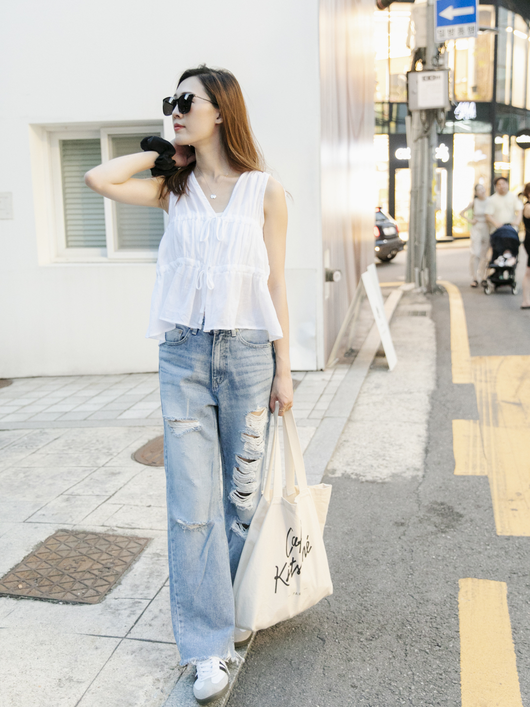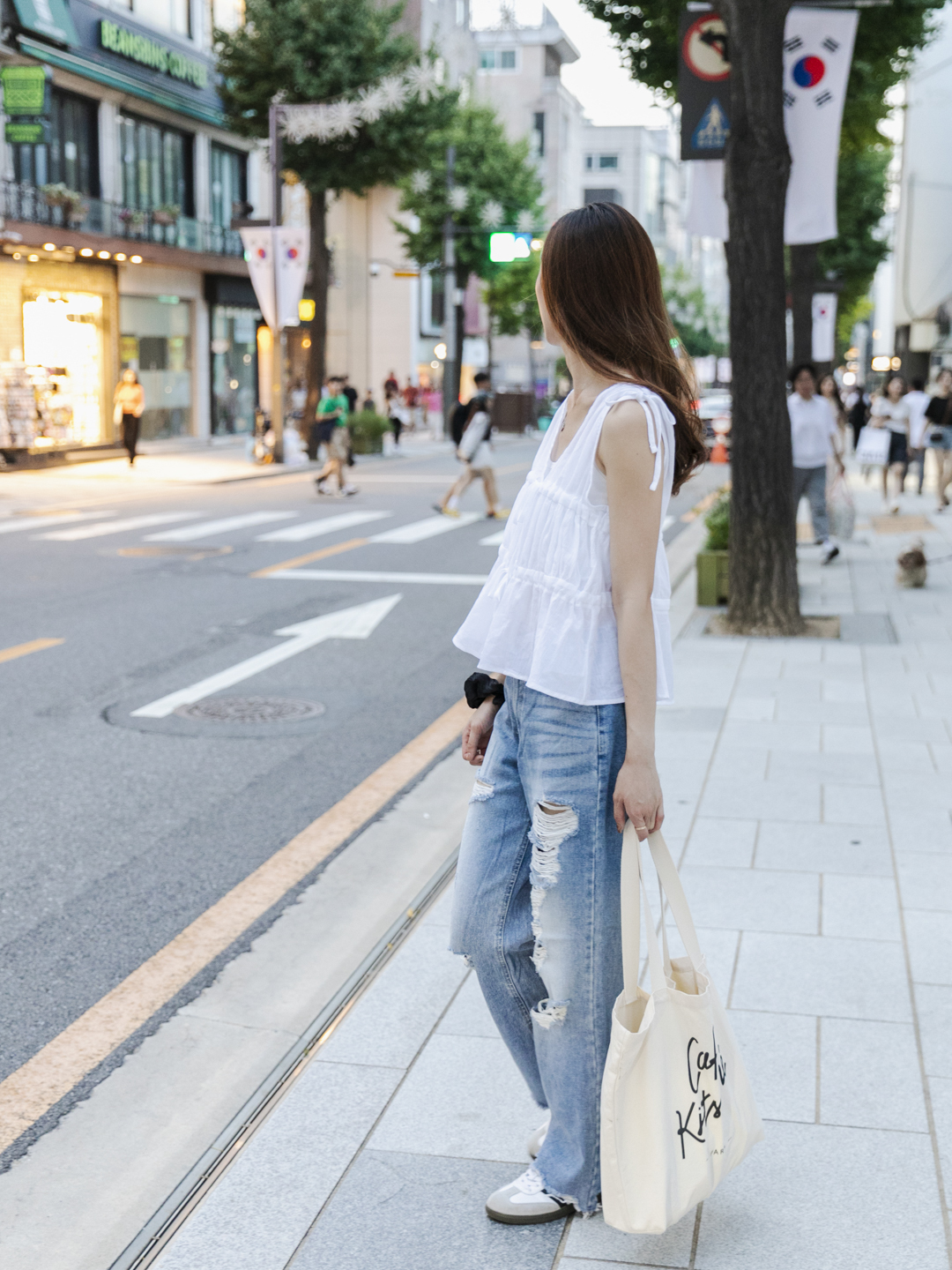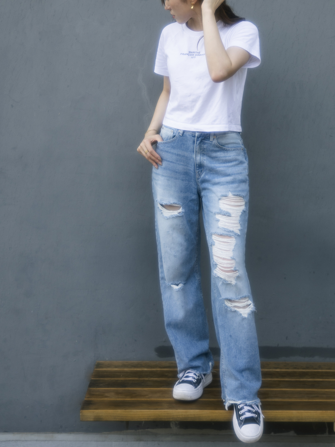 破洞直筒牛仔褲