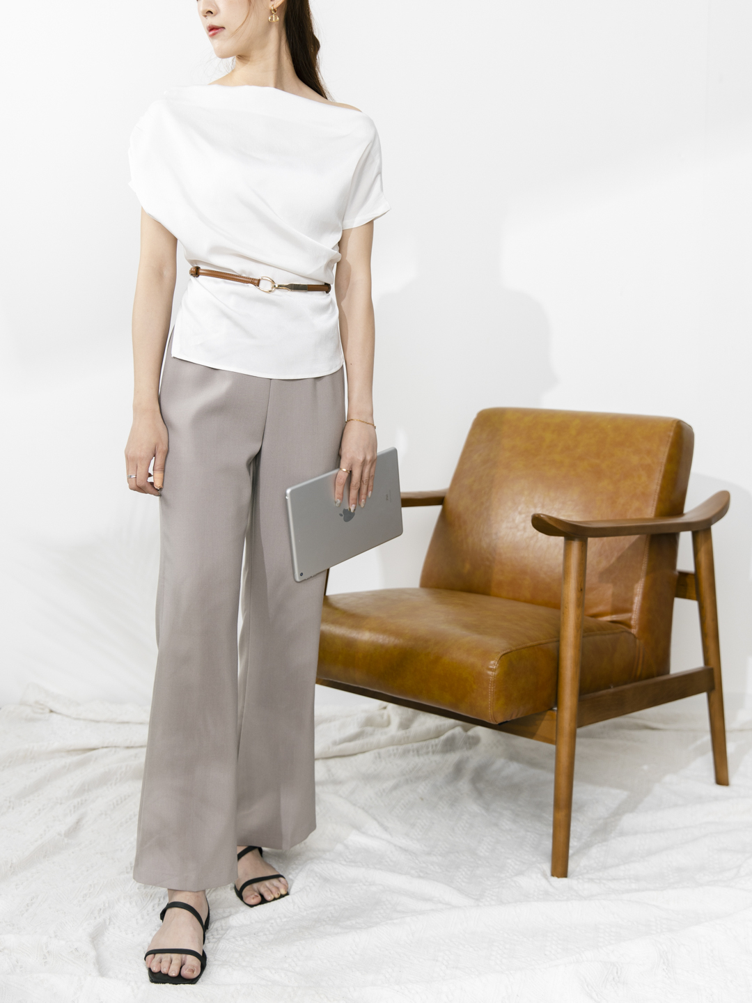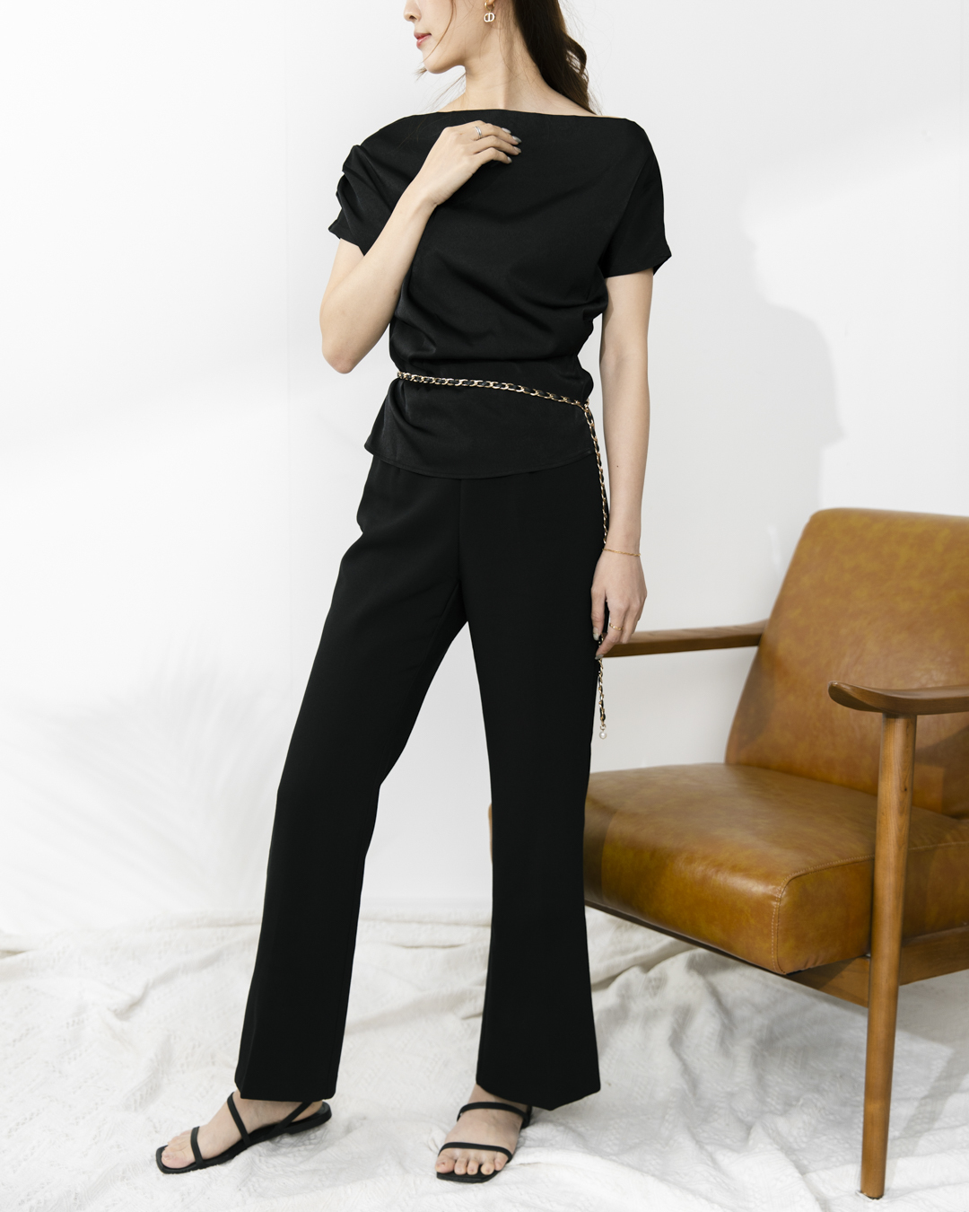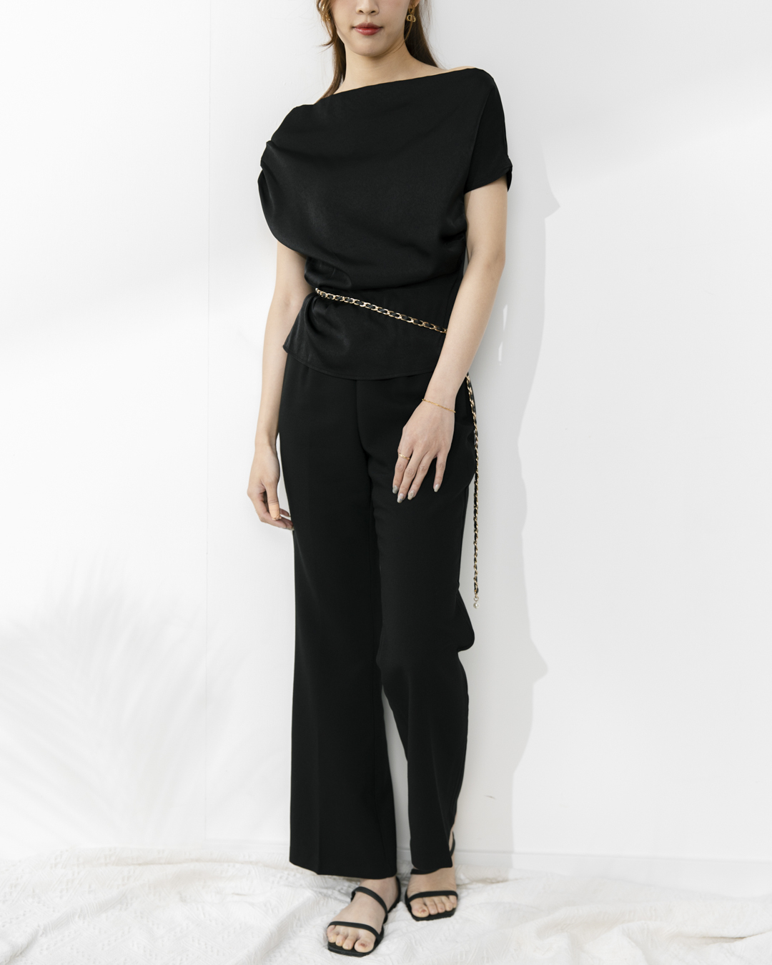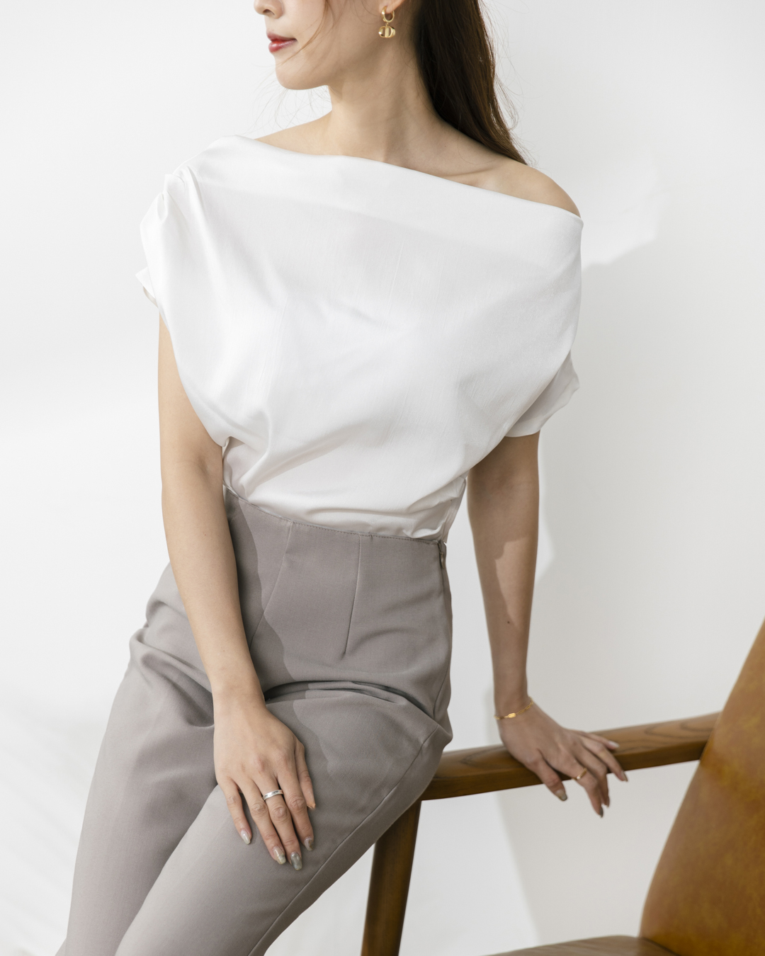 🪩緞面斜肩修腰上衣👑 (兩色入)