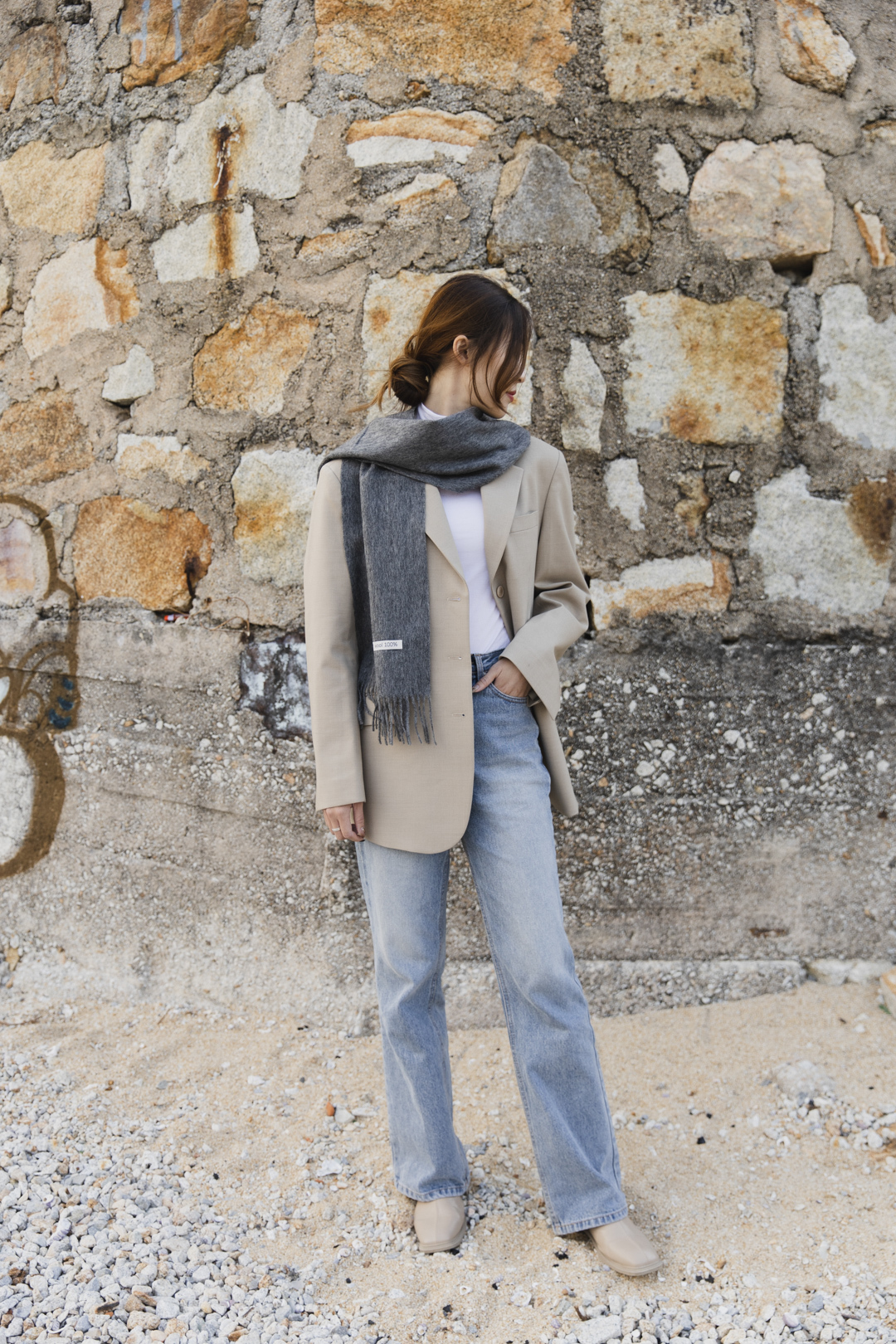100%暖羊毛配以簡約主義色調,百搭而大氣,高級感滿滿,有如北歐雜誌中收錄的中性時尚單品,是值得為冬日穿搭包色的頸巾。