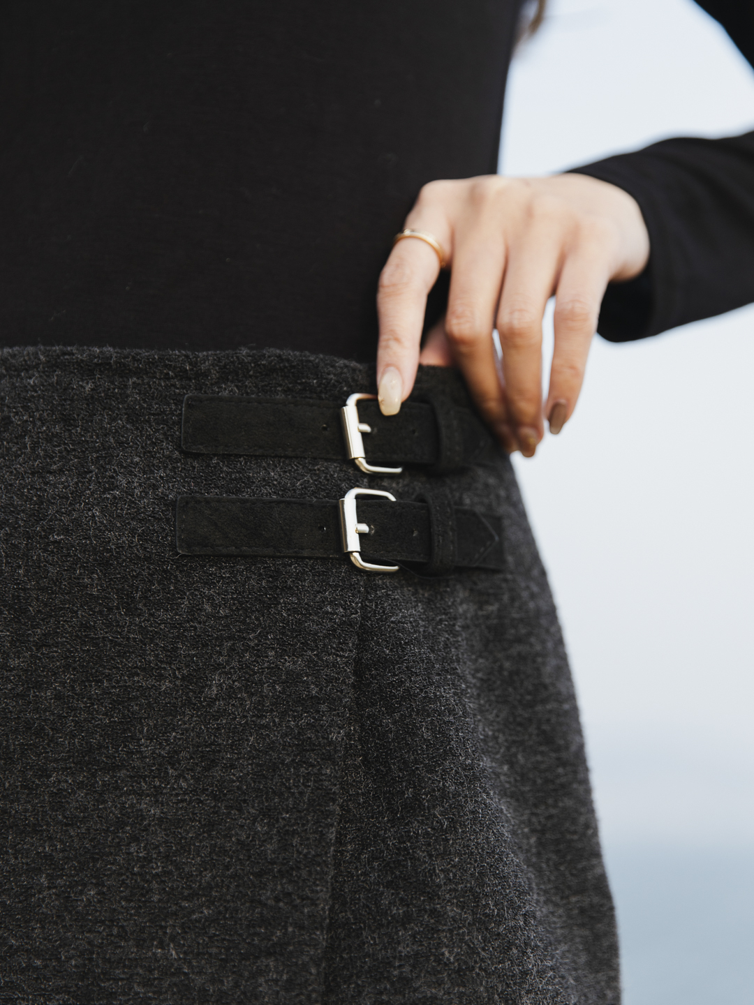 毛料雙帶扣裙褲 (兩色入)